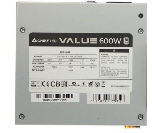 Блок питания Chieftec Value 600W (APB-600B8) ATX, 80Plus White, OEM