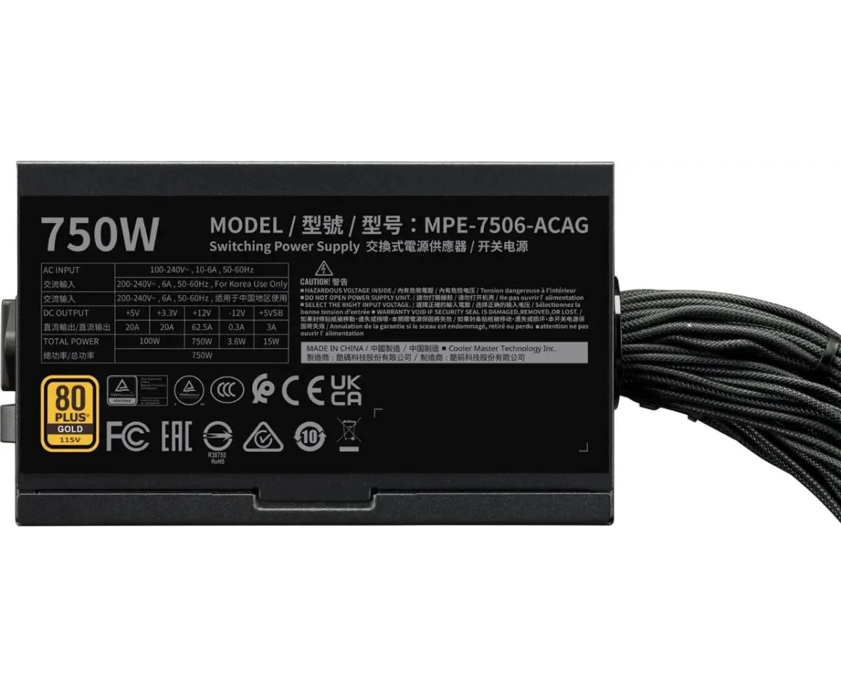 Блок питания Cooler Master Gold V3 Gen.5 (MPE-7506-ACAG-BEU), 750Вт, 80 Plus Gold, 120мм, retail