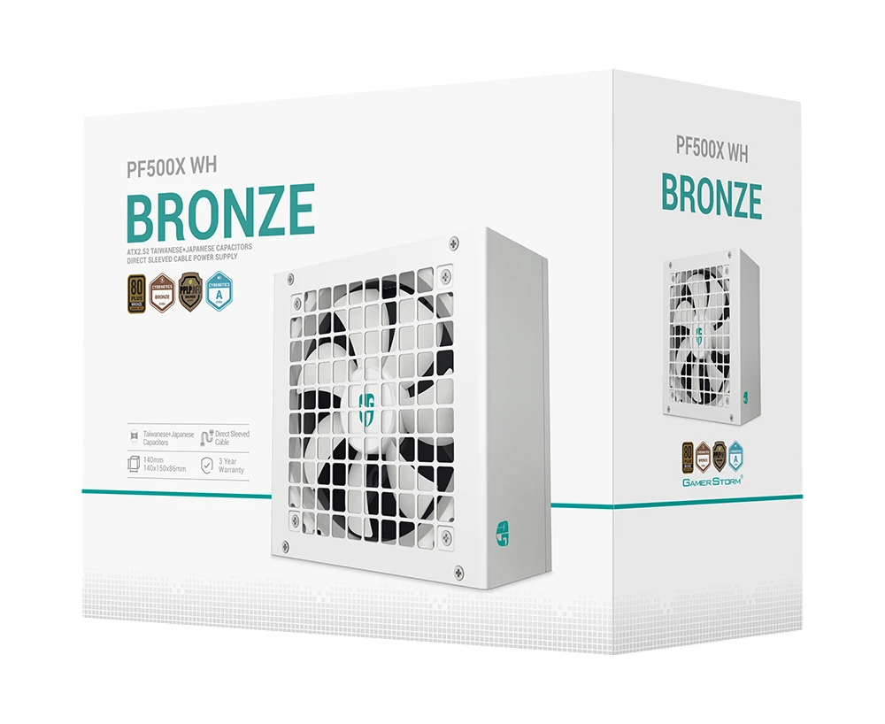 Блок питания Deepcool Gamerstorm PF500X WH (ATX 2.52, 500W, PWM 120mm fan, Active PFC+DC to DC, 80+ Bronze, белый) RET