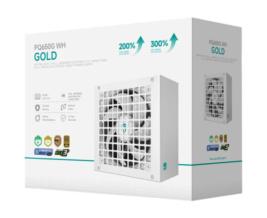Блок питания Deepcool GamerStorm PQ650G WH (ATX 3.1, 650W, Full Cable Management, PWM 120mm fan, 80+ Gold, Active PFC + Half Bridge + DC/DC)