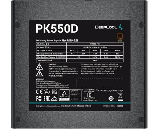 Блок питания Deepcool PK550D (R-PK550D-FA0B-EU) ATX 550W 80+ bronze (20+4pin) APFC 120mm fan 6xSATA RTL