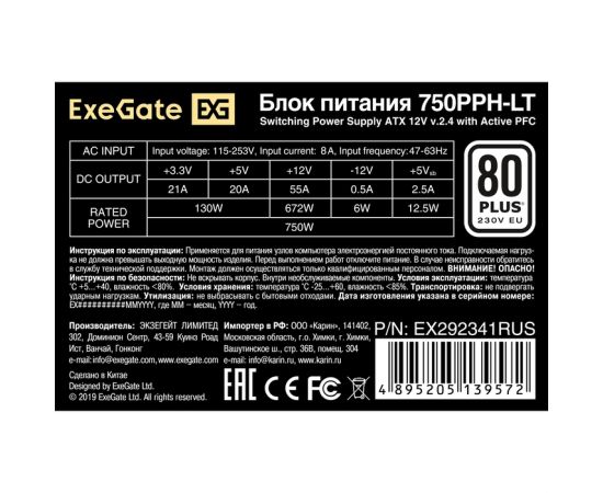 Блок питания Exegate 750PPH-LT-OEM EX292341RUS-OEM 750W 80 Plus (ATX, APFC, КПД 82проц. (80 Plus), 12cm fan, 24pin, 2x(4+4)pin, 4xPCI-E)