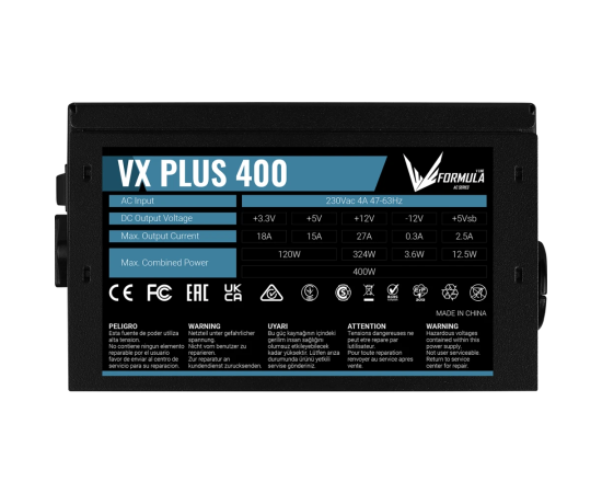 Блок питания FORMULA VX Plus 400 400W (4711401661627) (ATX, 20+4 pin, 1xPCIe 6P, 2xSATA, 2хMolex, 1хFDD, 12cm fan)