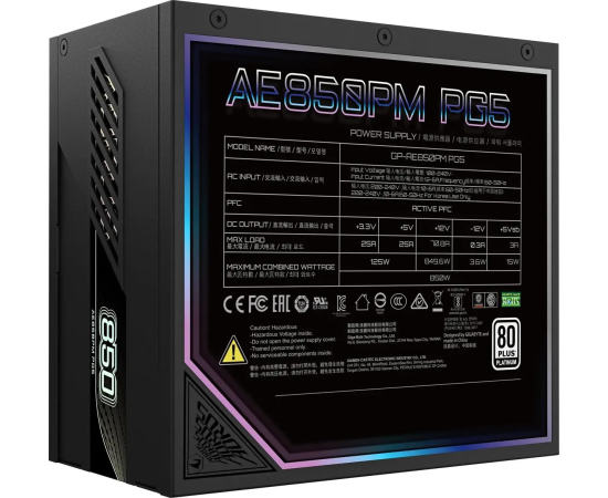 Блок питания GIGABYTE Aorus Elite GP-AE850PM PG5, Gen.5, 850Вт, 120мм, retail