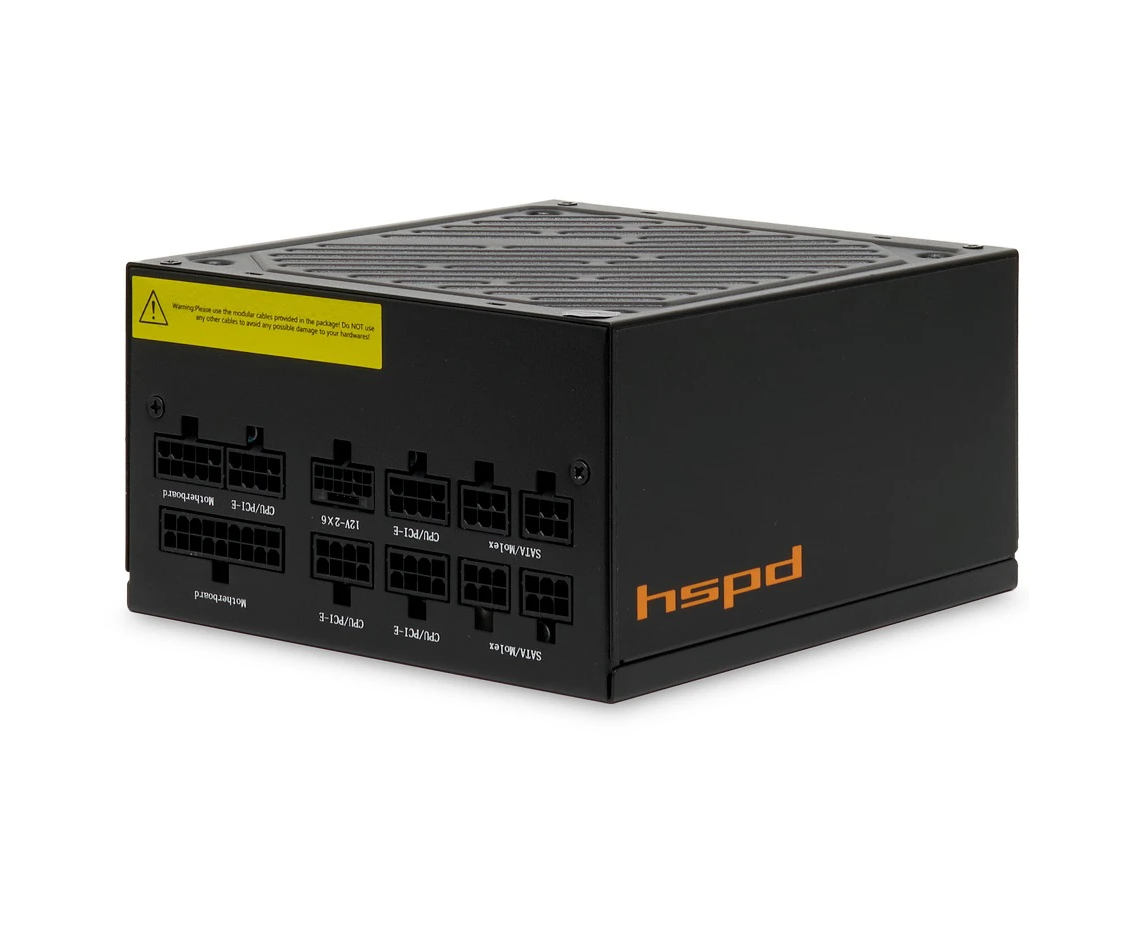 Блок питания HSPD HST-1200GF-BK 1200W 80+ Gold (ATX, 2.52, Full modular, 1x24(20+4)pin 600mm, 2xCPU 8(4+4)pin 700mm, 2xPCIe*2 8(6+2)pin
