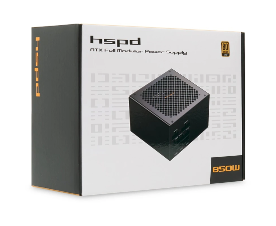 Блок питания HSPD HST-850GF-BK 850W 80+ Gold (ATX, 2.52, Full modular, 1x24(20+4)pin 600mm, 2xCPU 8(4+4)pin 700mm, 2xPCIe*2 8(6+2)pin