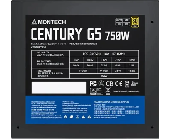 Блок питания MONTECH Century Gold G5, 750Вт, 120мм, retail
