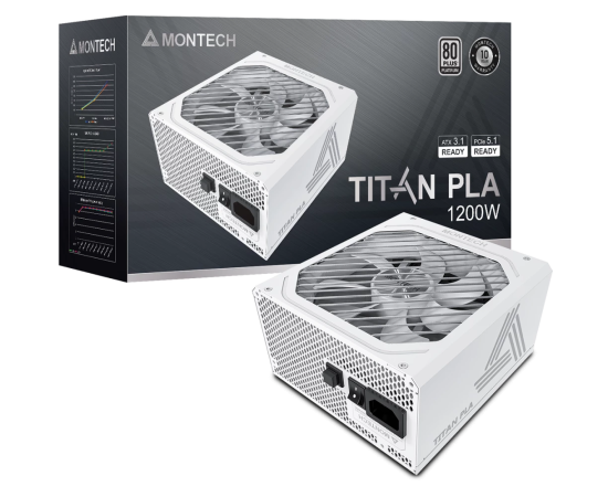 Блок питания Montech Titan PLA 1200W (TIX0126) / ATX 3.1, APFC, 80 Plus Platinum, Japan caps, 135mm fan, full modular