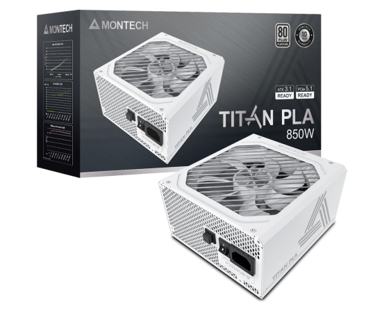 Блок питания Montech Titan PLA 850W (TIX0124) / ATX 3.1, APFC, 80 Plus Platinum, Japan caps, 135mm fan, full modular