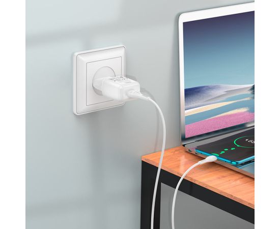 Блок питания сетевой 1 USB HOCO, C72Q, Glorious, 3A, пластик, QC3.0, цвет: белый