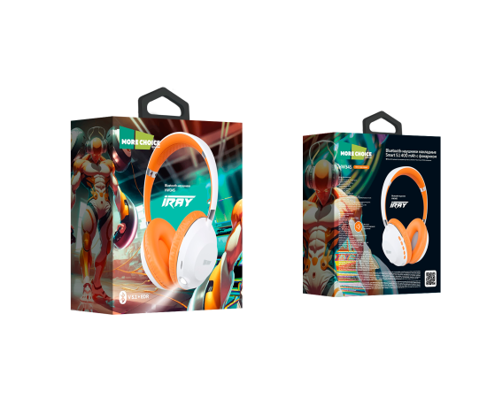 Bluetooth-наушники накладные Smart 5.1 400mAh More choice HW34S с фонариком (White Orange)