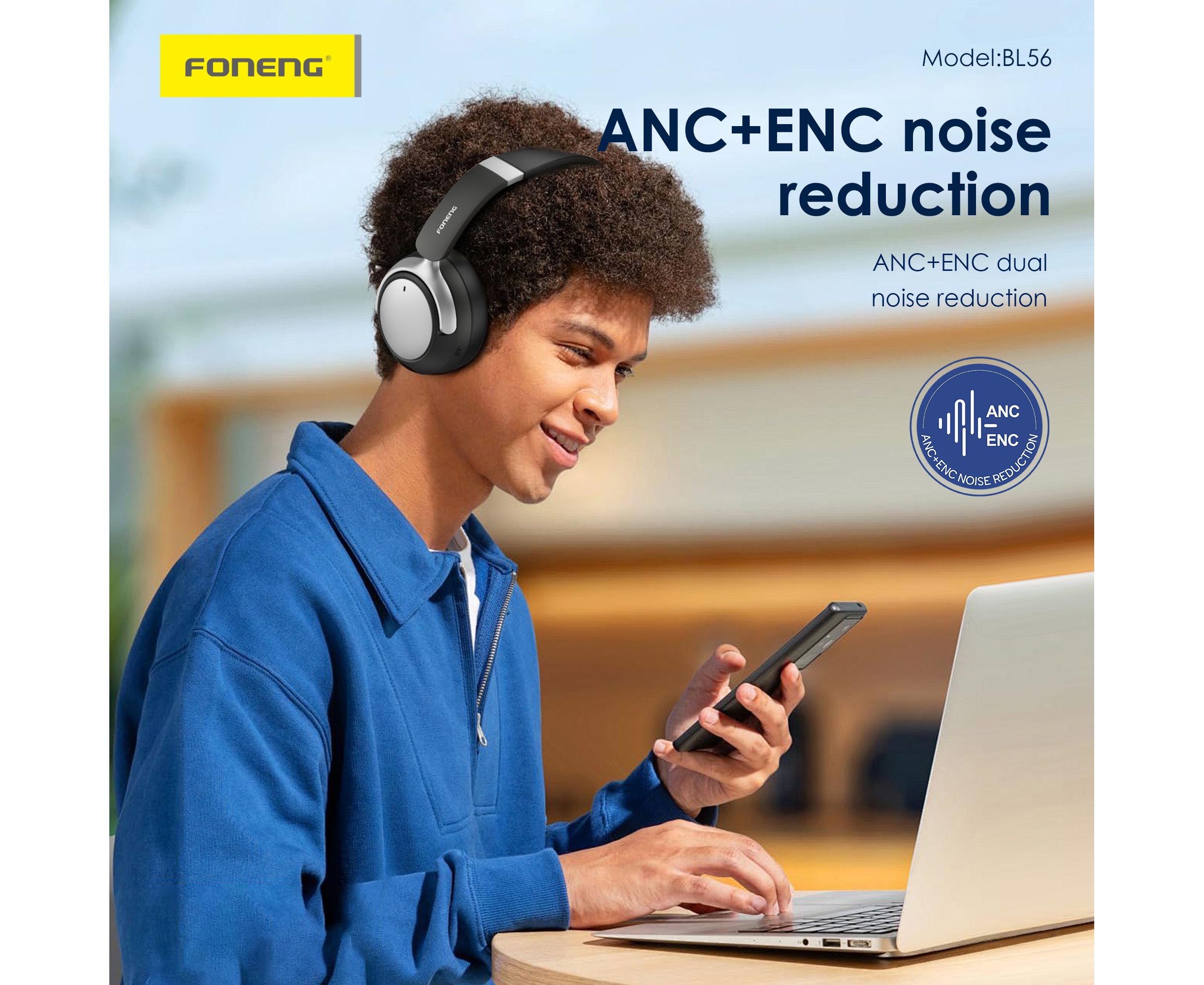 Bluetooth-наушники полноразмерные Foneng BL56 ANC + ENC шумоподавление (Beige)