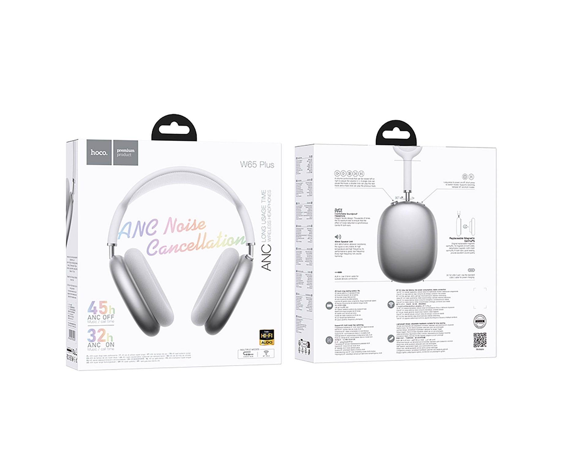 Bluetooth-наушники полноразмерные Hoco W65 Plus Happy ANC (silver) (240933)