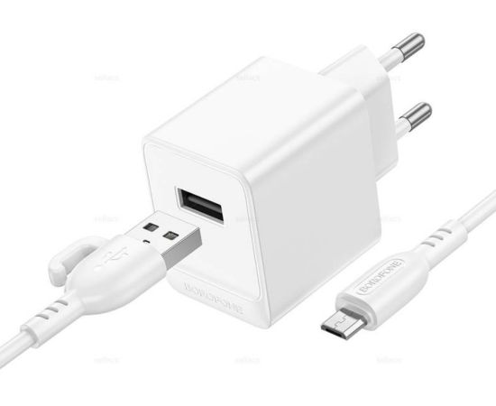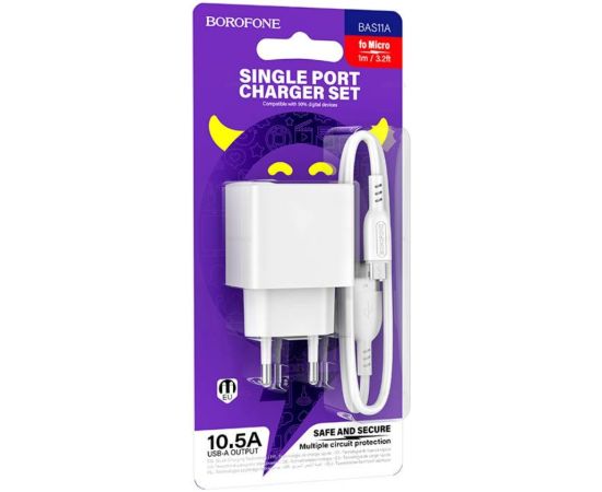 Сетевое зарядное устройство BOROFONE BAS11A/ СЗУ + Кабель Micro 1m/ 1 USB/ Выход: 10.5W/ Белый