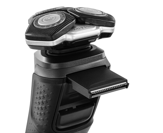 Электробритва Philips S5898/35 роторного типа подходит для сухого и влажного бритья. К 3 секциям прилагаются плавающие головки, повторяющие контуры лица в процессе. Это означает, что создать подходящие условия для бритья можно даже для чувствительной кожи. В этом также помогает технология SkinIQ, анализирующая особенности лица владельца и подбирающая к нему оптимальные условия. Например, она распознает тип щетины и ее густоту. Устройство может работать от аккумулятора до 1 ч при условии полной зарядки. Его можно брать с собой – для безопасности у него есть функция блокировки кнопок и дорожный чехол. Дополнительно предусмотрена возможность использовать Philips S5898/35 в качестве триммера.