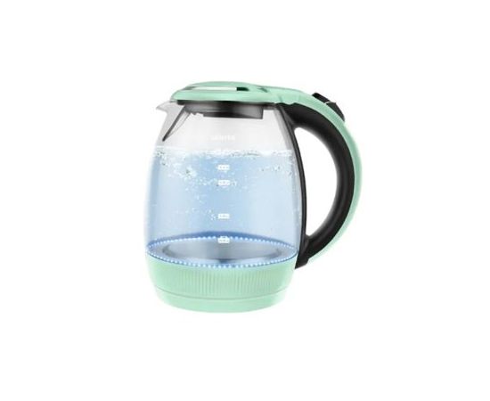 Электрический чайник CENTEK CT-0008 Mint поможет быстро вскипятить питьевую воду до 100°С благодаря мощности 2200 Вт. Корпус чайника выполнен из боросиликатного стекла с элементами из термостойкого пищевого пластика мятного цвета. Данный дизайн чайника и приятная светодиодная подсветка позволяет ему вписаться в любой интерьер кухни. На корпусе чайника имеется шкала уровня воды. Подставка с центральным контактом дает возможность ставить на нее чайник в любом положении, обеспечивая вращение на 360°. Снизу имеется отсек для хранения шнура питания.