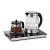 Заварочный чайник изготовлен из термостойкого стекла и имеет съёмный фильтр из нержавеющей стали для чая или кофе. В месте установки заварочного чайника на базе находится платформа с подогревом.