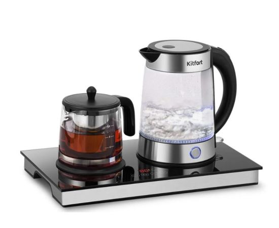 Чайный набор КТ-6744 состоит из чайника ёмкостью 1,7 л, заварочного чайника ёмкостью 1 л с фильтром и базы. Чайный набор позволяет не только вскипятить воду, но и заварить чай или кофе в заварочном чайнике.
