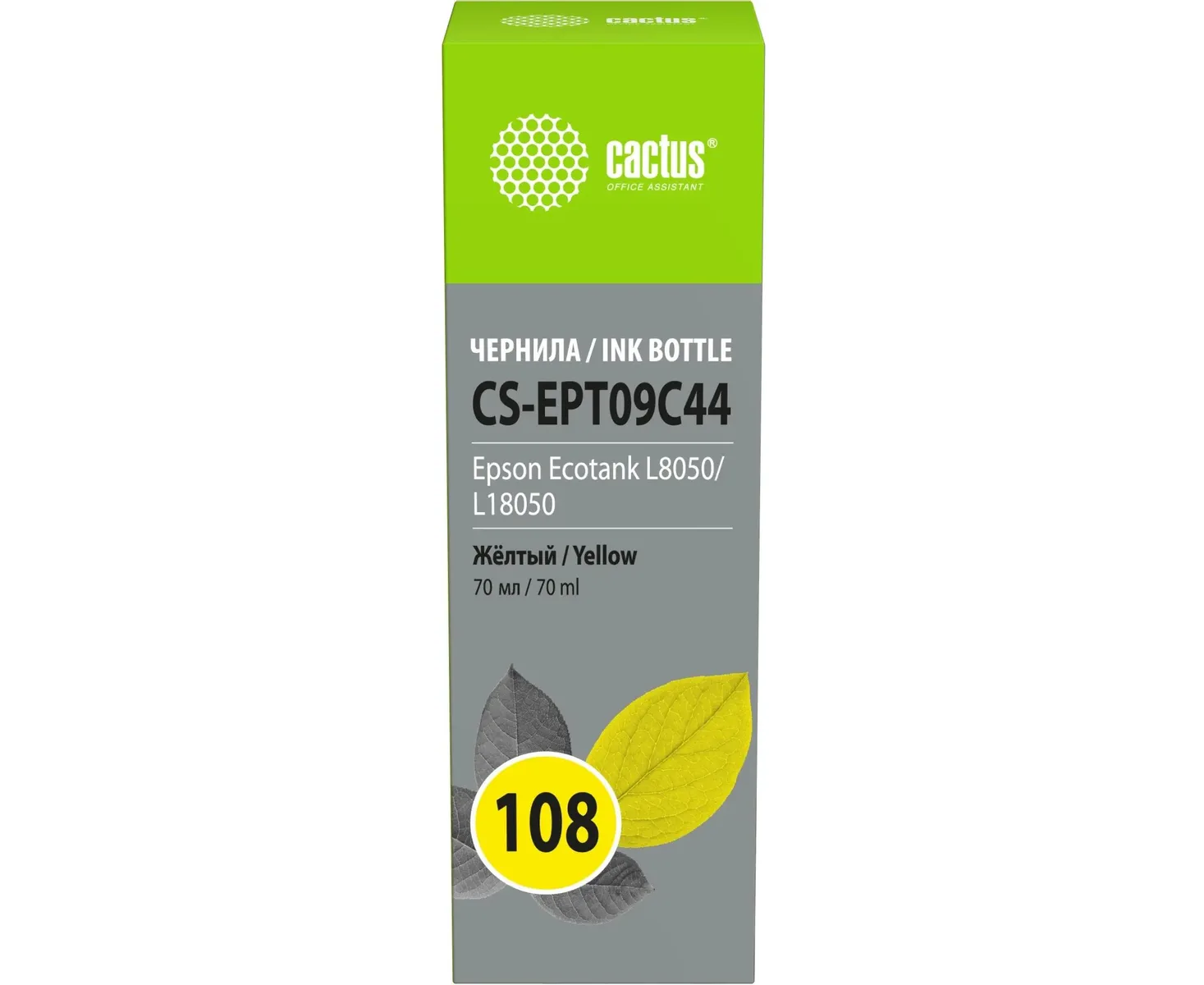 Чернила Cactus CS-EPT09C44 108 желтый70мл для Epson Ecotank L8050/L18050
