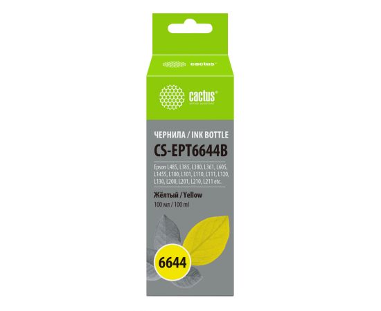 Чернила Cactus CS-EPT6644B T6644 желтый 100мл для Epson L100/L110/L120/L132/L200/L210/L222/L300/L312/L350/L355/L362/L366/L456/L550/L555/L566/L1300