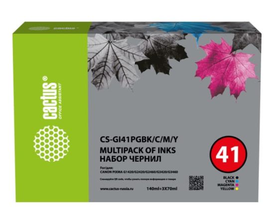 Чернила Cactus CS-GI41PGBK/C/M/Y голубой/пурпурный/желтый/черный350мл для Canon PIXMA G1420/G2420/G2460/G3420/G3460
