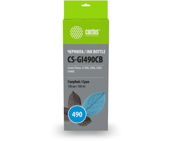 Чернила Cactus CS-GI490CB GI-490 голубой 100мл для Canon Pixma G1400/G2400/G3400