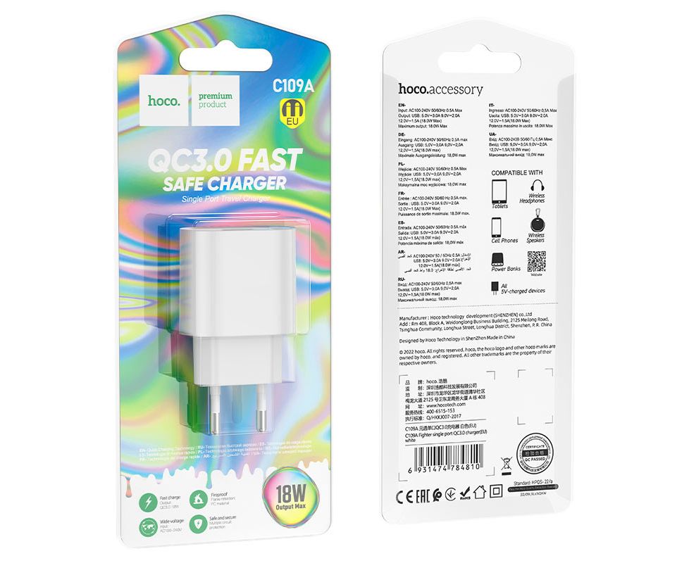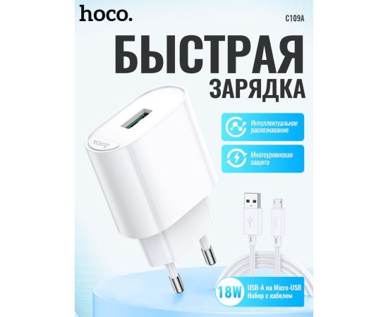 СЗУ HOCO C109A Fighter single port QC3.0 charger(EU) (белый)