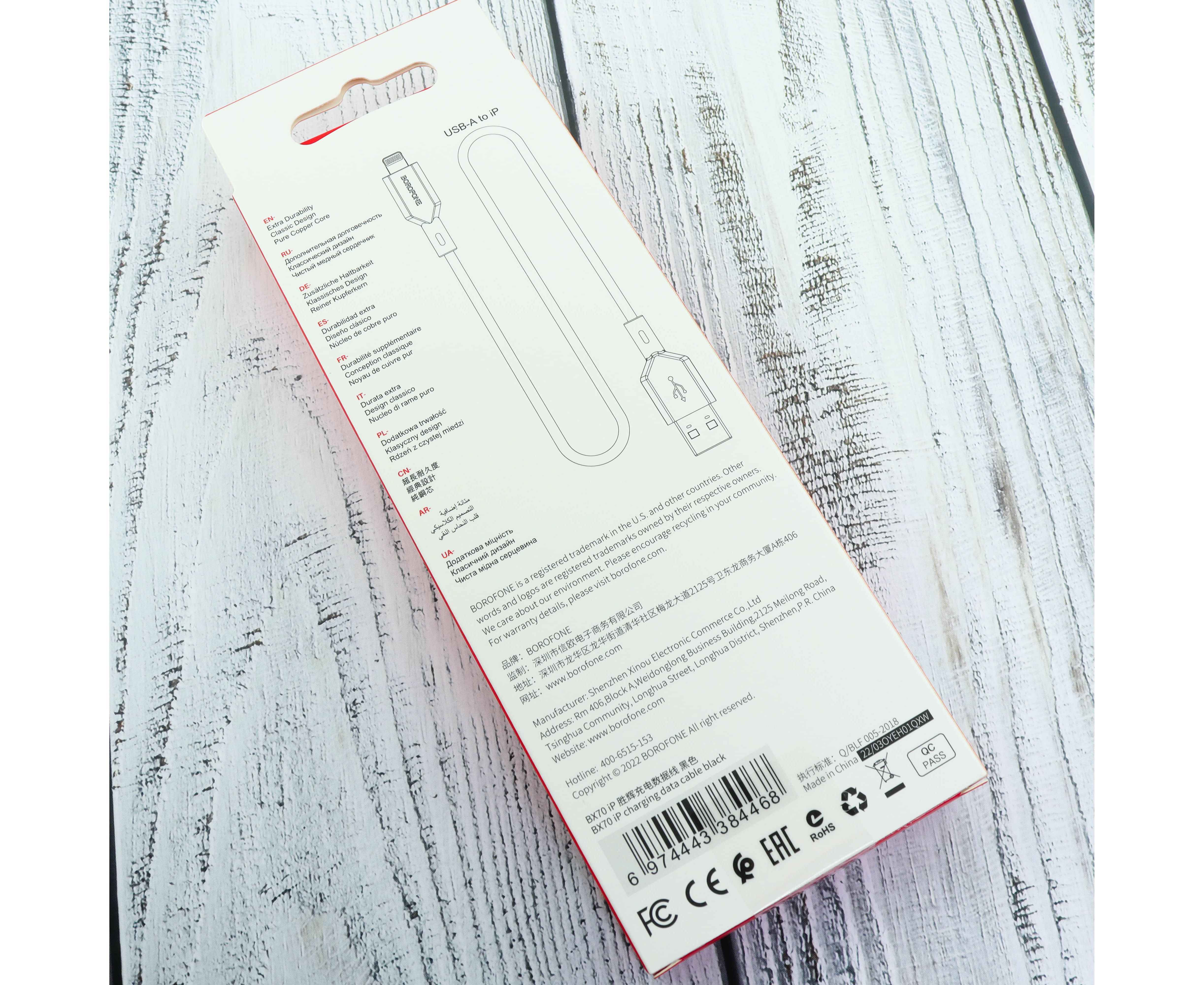 Дата-кабель BOROFONE BX70 Lightning (чёрный)