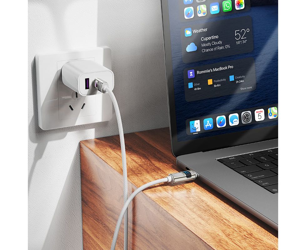 U137 Line, Type-C на Type-C зарядный дата кабель, поддержка быстрой зарядки PD 60W, LED цифровой дисплей, нейлоновая оплётка и коннекторы из цинкового сплава, длина – 1.2м