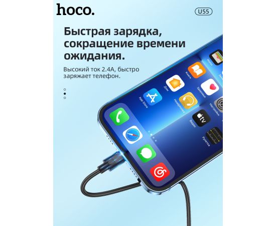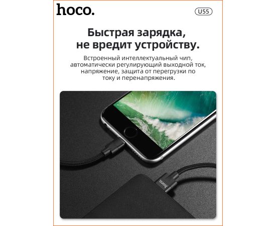 Дата-кабель HOCO U55 Outstanding lightning 1м (чёрный)