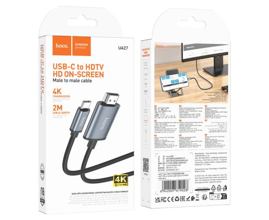 UA27, видеокабель для подключения Type-C к HDTV, поддерживает разрешение 4K 30 Гц, длина 2 м