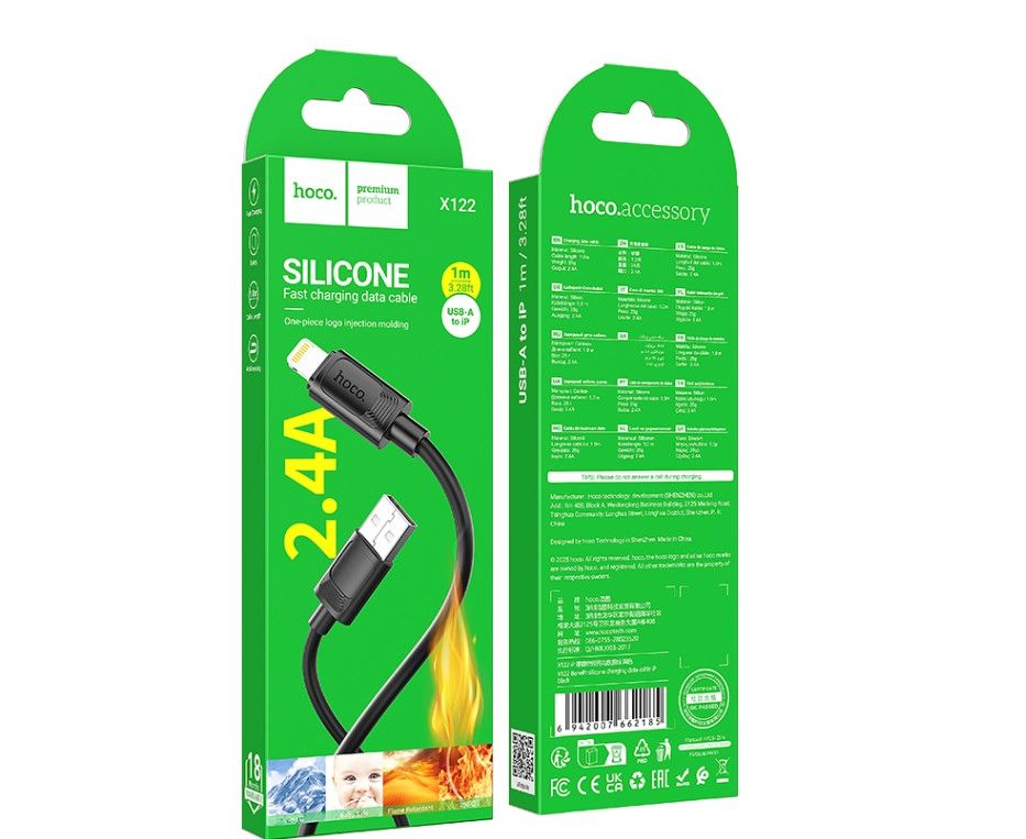 Дата-кабель HOCO X122 Benefit silicone charging data cable iP (черный)