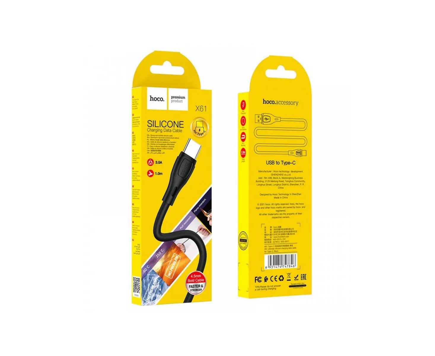 Дата-кабель Hoco X61 Ultimate silicone charging data cable for Type-C Black