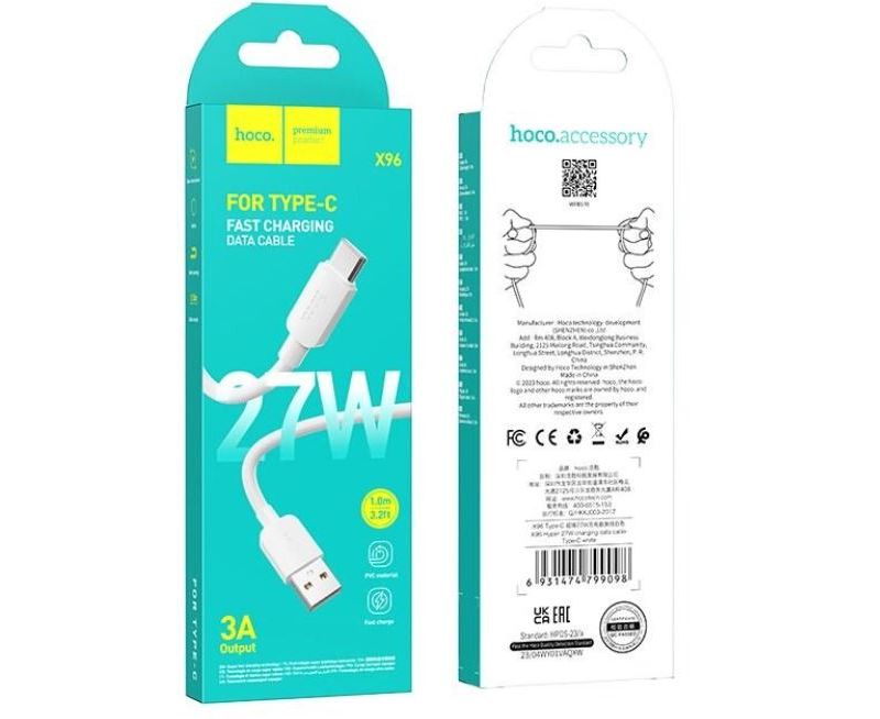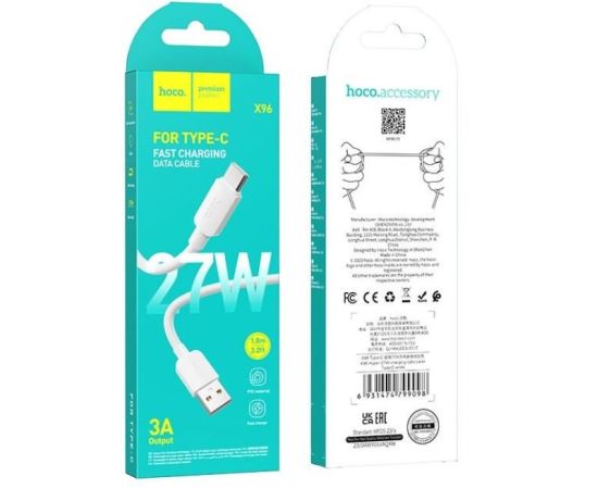 Дата-кабель HOCO X96 Hyper 27W charging data cable Type-C (белый)