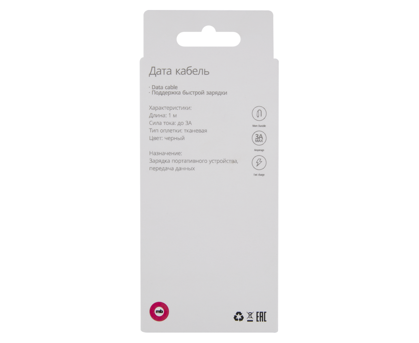 Дата-кабель mObility Type-C - Type-C, 3А, тканевая оплетка, черный