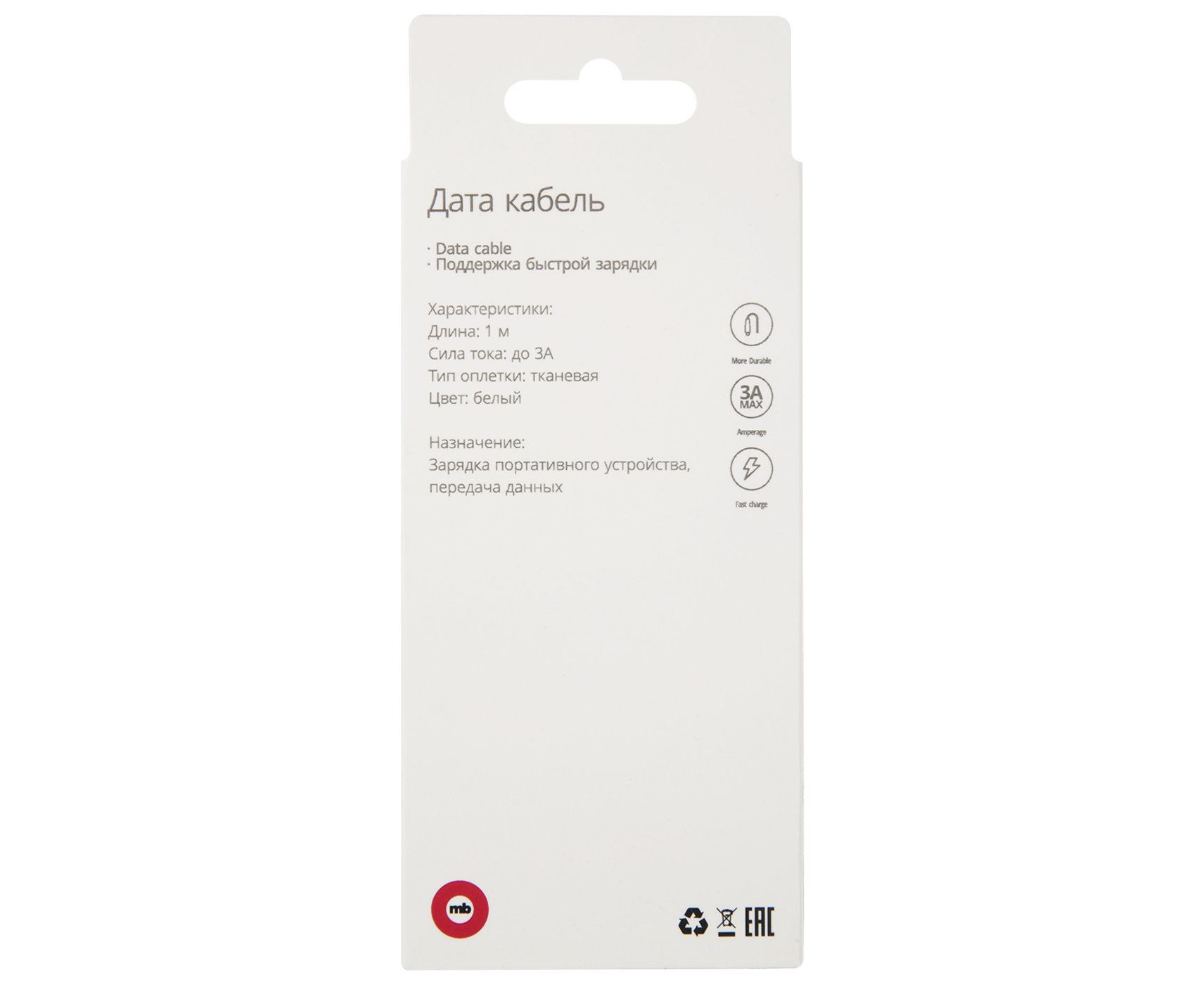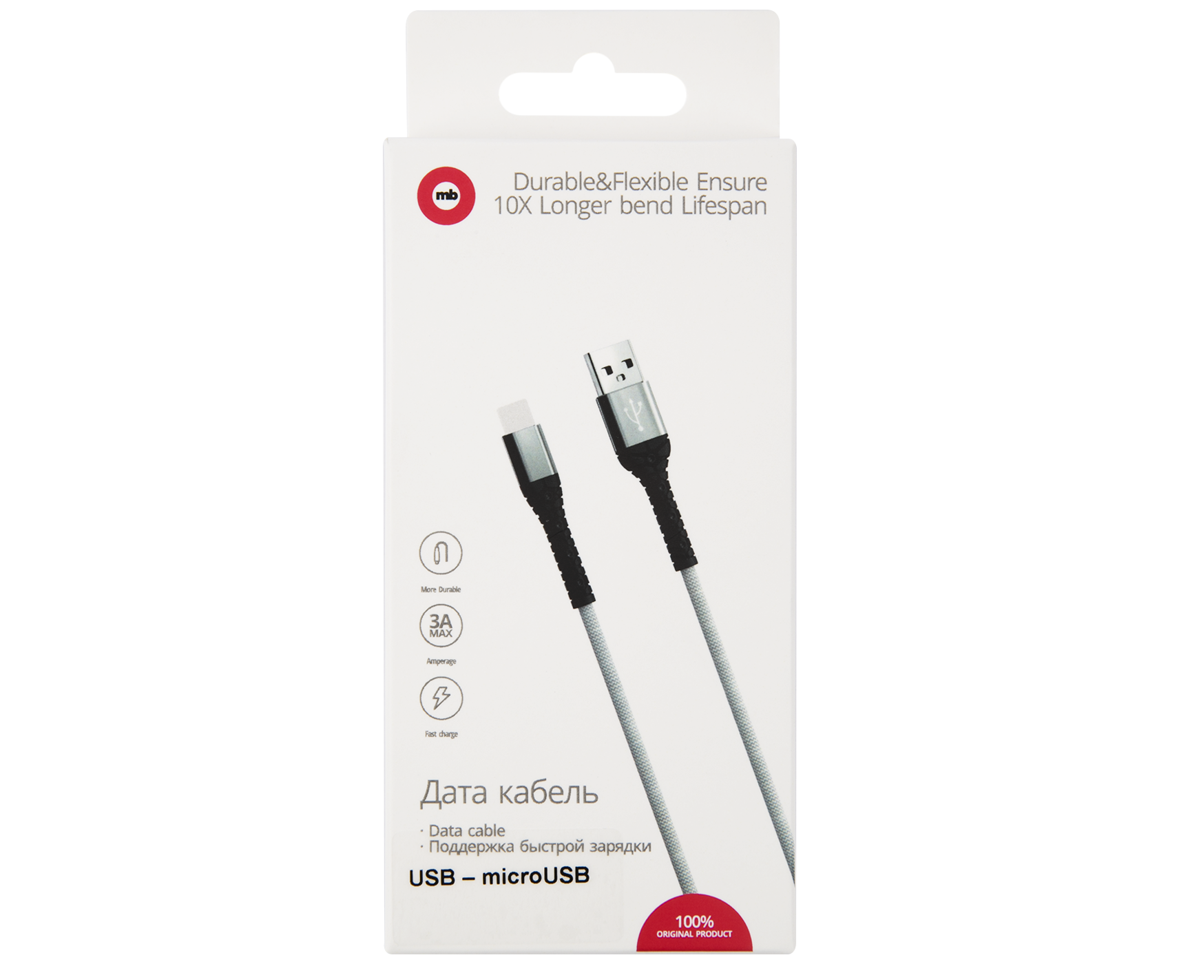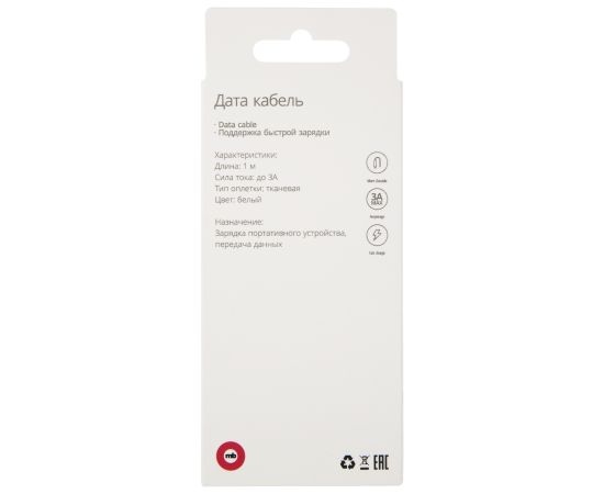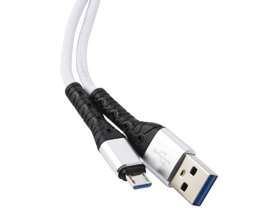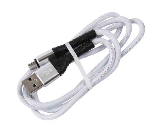 Дата-кабель mObility USB – microUSB, 3А, тканевая оплетка, белый