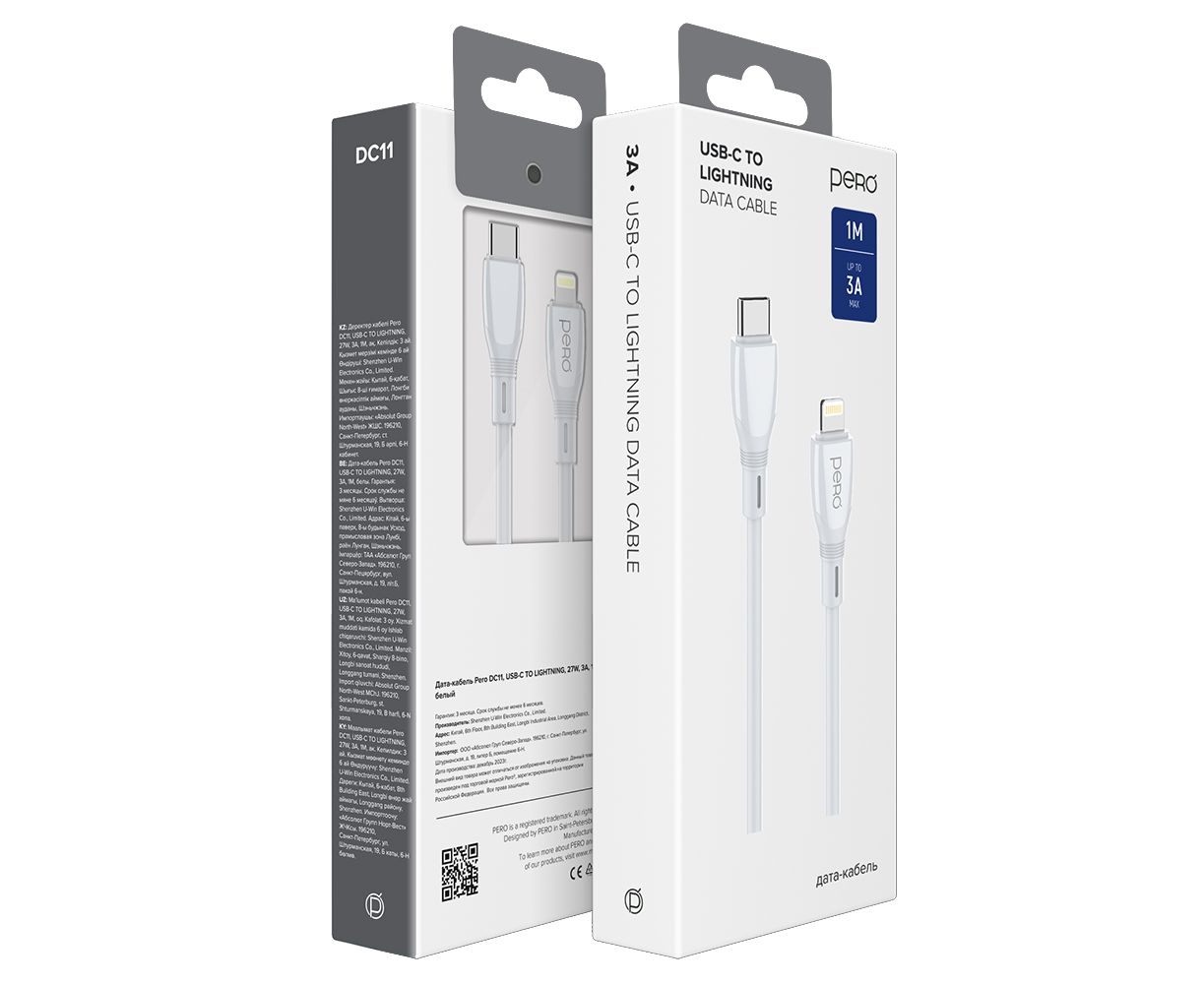 Дата-кабель PERO DC11 PD Type-C to Lightning, 27W, 1m, White