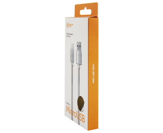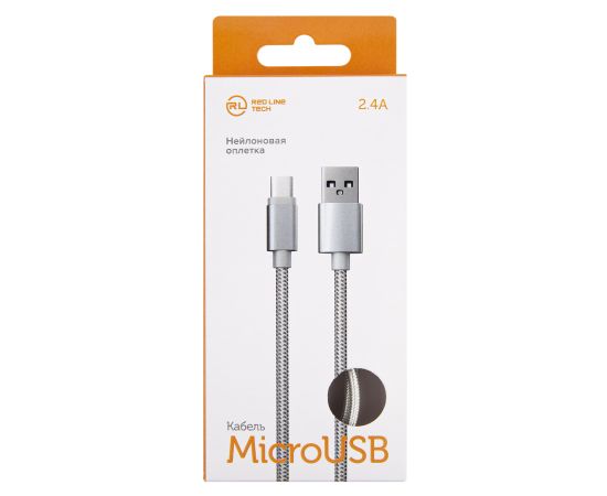 Дата-кабель Red Line USB - micro USB нейлоновая оплетка, серебристый