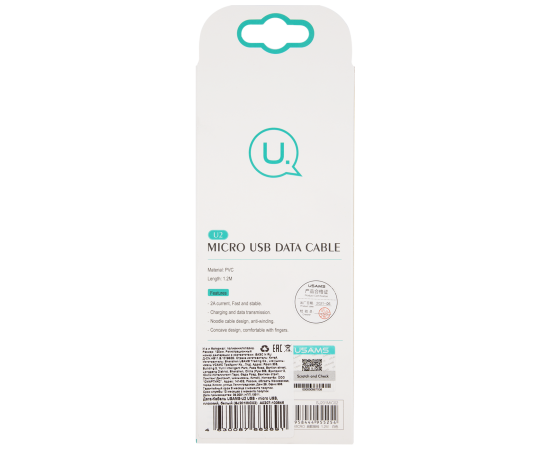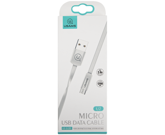 Дата-Кабель USAMS-U2 USB - micro USB, плоский, белый (SJ201MIC02)