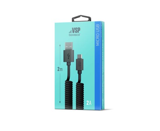 Дата-кабель USB - micro USB, 2А, 2м, витой, черный