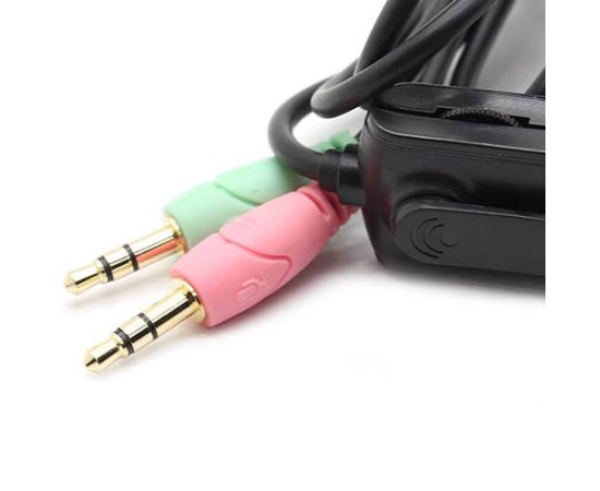 Полированный корпус из пластика черного цвета. Оголовье - регулируемое. Отделка амбушюров выполнена из синтетической кожи с поролоновым наполнителем. Большие 40 мм динамики. Крепление шнура - одностороннее. Регулируемый по углу наклона микрофон. Регулятор громкости на шнуре.
