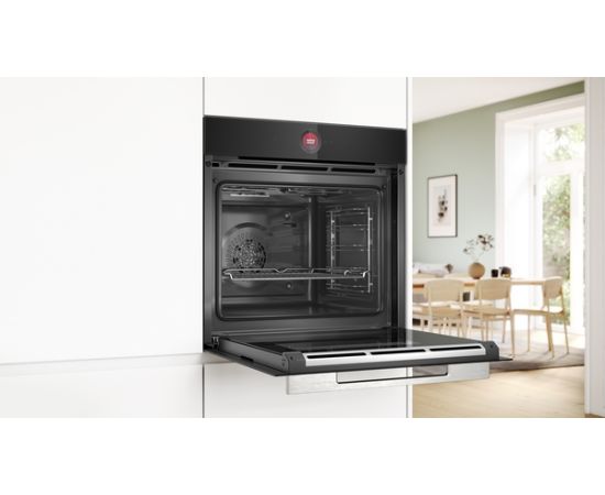 Дополнительная информация Система помощи духовке с голосовым управлением, Электронное управление: BE61, Электронные часы, Предлагаемая температура, Отображение фактической температуры. Управление отоплением., Сторона, обращенная к двери: пропаренная, Системы поддержки - Категории продуктов питания, Галогенное освещение, Комфортное освещение духовки (переключаемое), Системная интеграция: WLAN