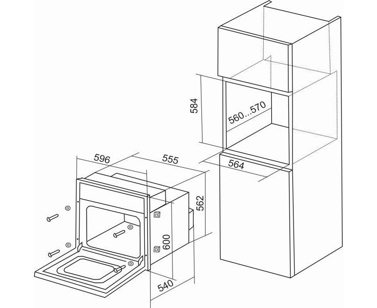 Размеры для встраивания (ВхШхГ)584x564x560 мм
