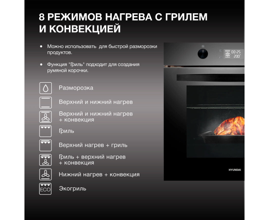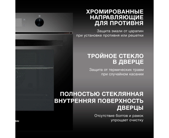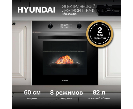 Духовой шкаф электрический Hyundai HEO 6646 BG черное стекло