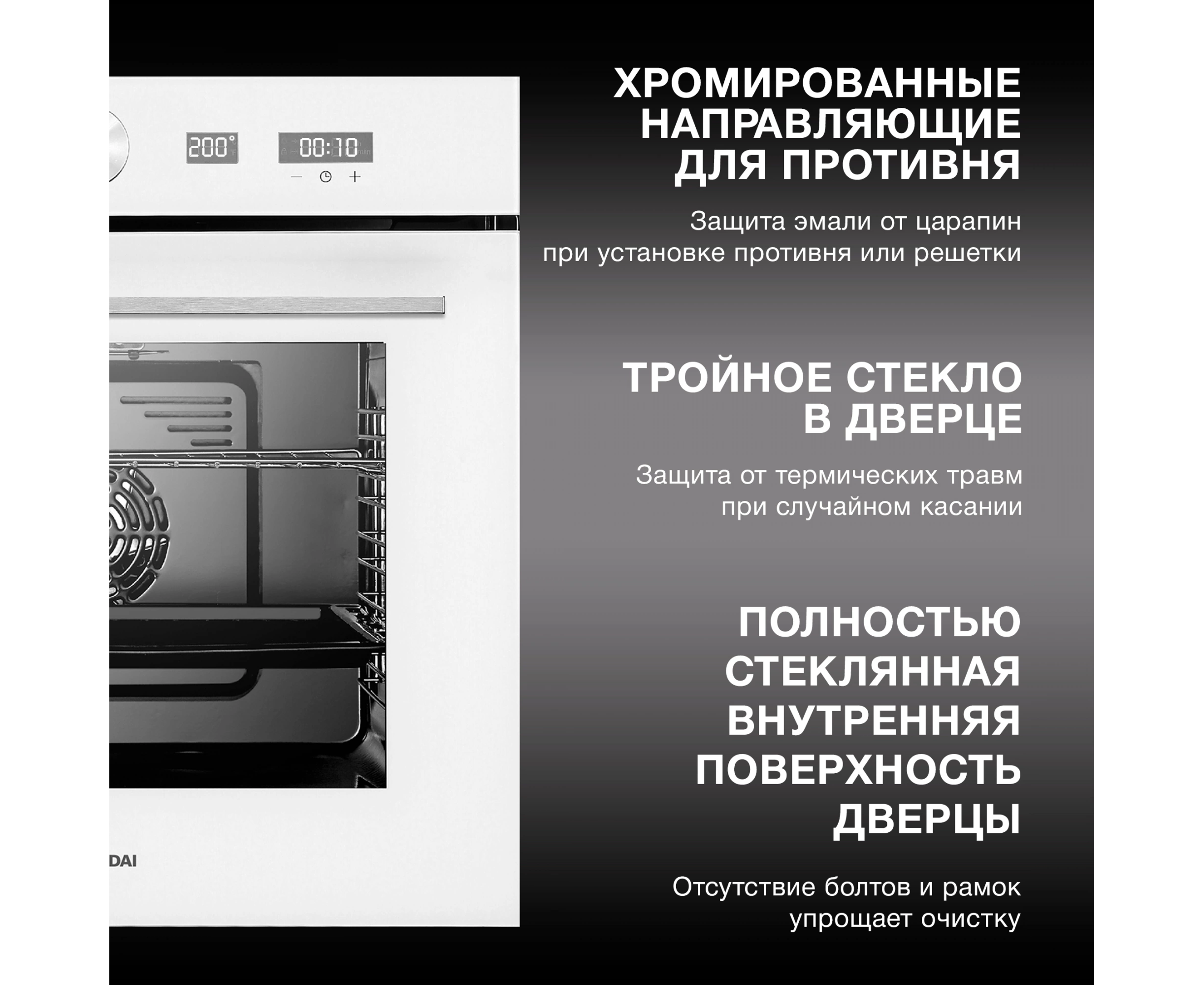 Полностью стеклянная внутренняя поверхность дверцы духовки