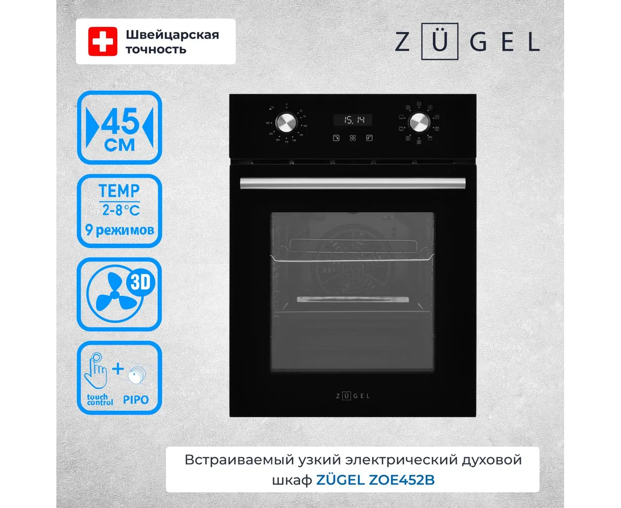 Духовой шкаф ZUGEL ZOE452B, черный