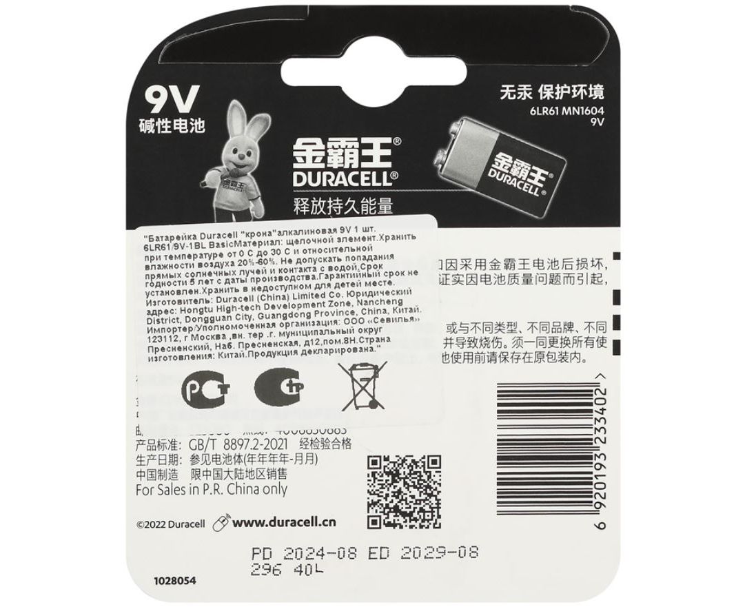 Преимущества Duracell 6LR61-1BL /6LF22-1BL/6LP3146 00000754