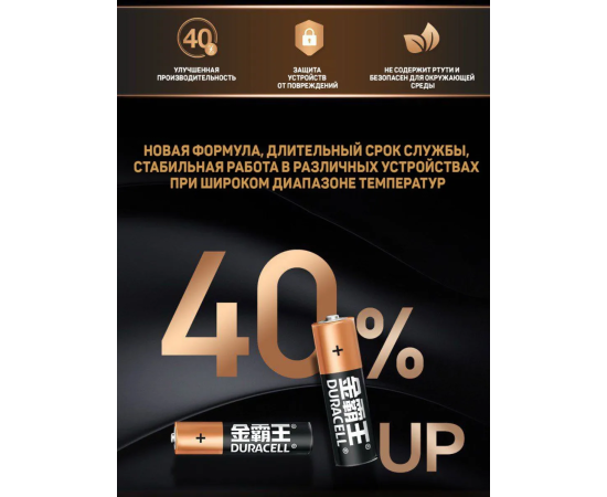 Универсальные щелочные батарейки Duracell размера AA/LR6 – идеальный выбор для обеспечения стабильной работы ваших устройств. Они отличаются высокой мощностью и долговечностью, благодаря чему отлично подходят для использования в часто применяемых устройствах, таких как механизированные игрушки, фонарики, портативные игровые консоли, пульты дистанционного управления. Батарейки Duracell размера AA обладают повышенной мощностью, обеспечивая до 40% больше энергии по сравнению со стандартными батарейками.