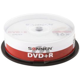 Диск DVD+R SONNEN 513532, 4,7Gb, 16x, Cake Box (упаковка на шпиле) 25шт