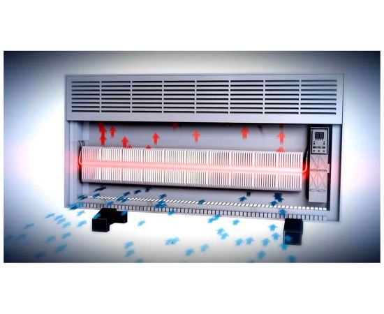 Алюминиевый Х – образный монолитный нагревательный элемент внутри прибора нагревает воздух при помощи специальных пластин (крылышек). Холодный поток воздуха заходит через нижние каналы, проходит через нагревательный элемент, затем нагретый воздух выходит через верхние решётки. Происходит естественная конвекция воздуха и обогрев помещения. За счет такой конструкции не возникает шум, вызываемый нагревом и охлаждением данного прибора, не сжигается пыль и кислород. Конвекторы нагреваются за короткое время, по размерам занимают мало места, легкие по весу.